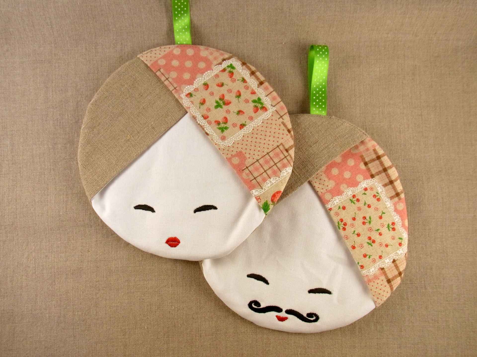 Topflappen She & He, 1000-und-eine-naht über DaWanda.com erhältlich, Preis: 12,50 Euro.