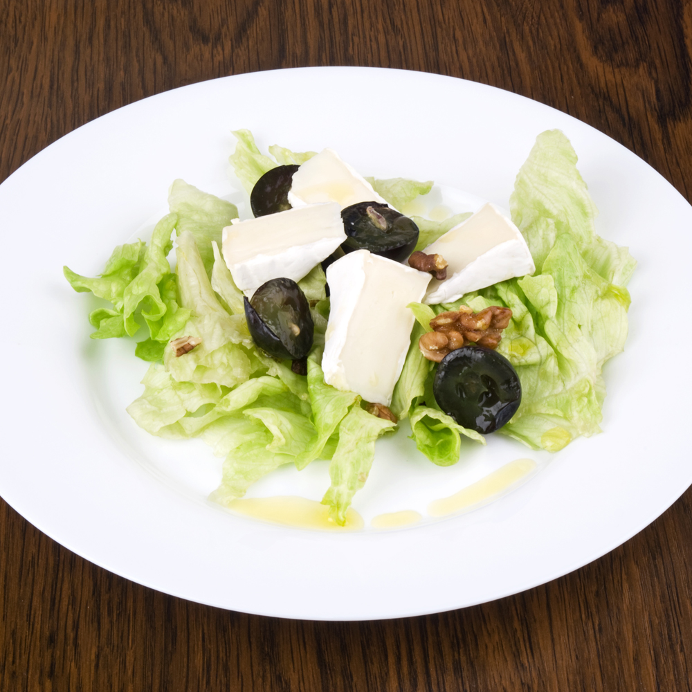 Blattsalate mit karamellisierten Trauben und Camembert