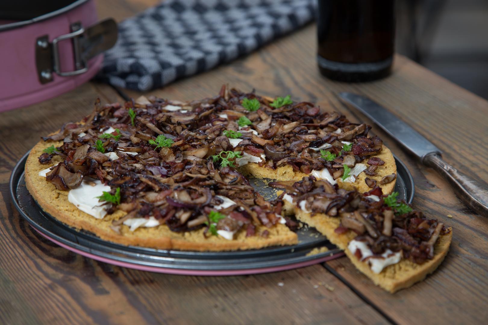 Socca mit Steinpilzen, Bacon und Ziegenkäse