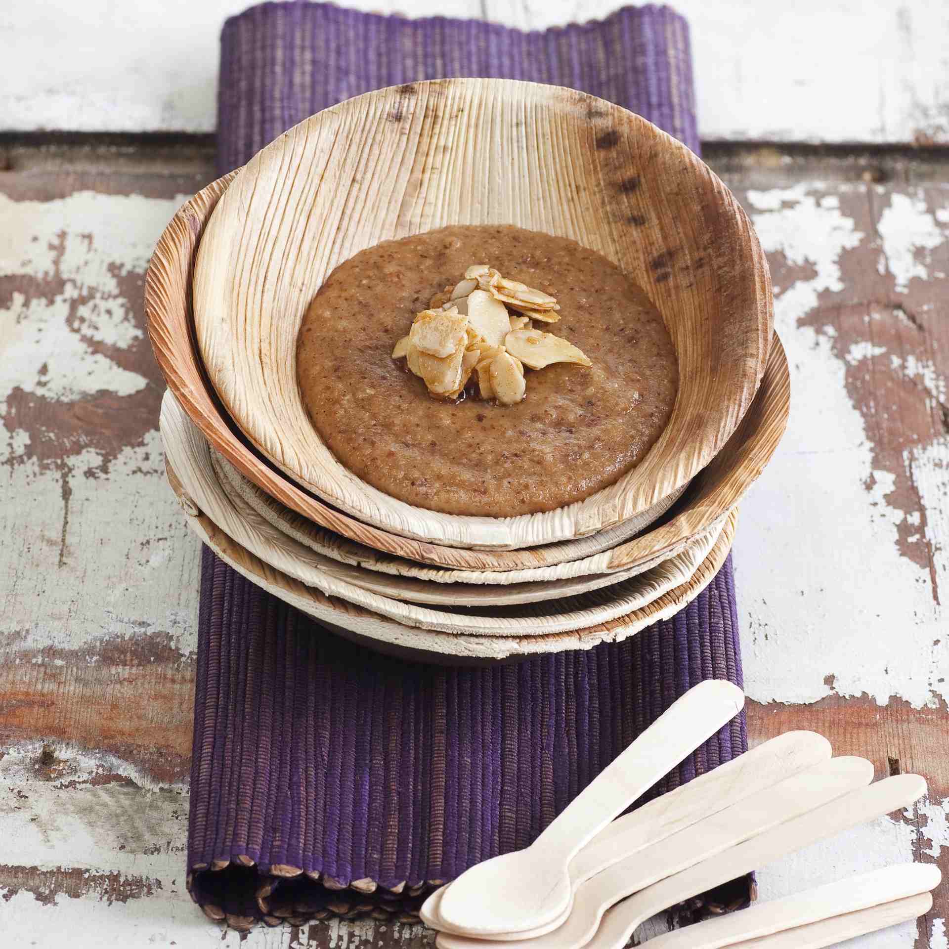 Mandeln fettfrei rösten, dann in den Topf hinzugeben und bei kleiner Flamme weitere 25 Minuten köcheln lassen.